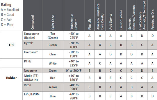 Podendo ser de Santoprene, Hytrel ou Uretano, o Santoprene é mais comercializado.